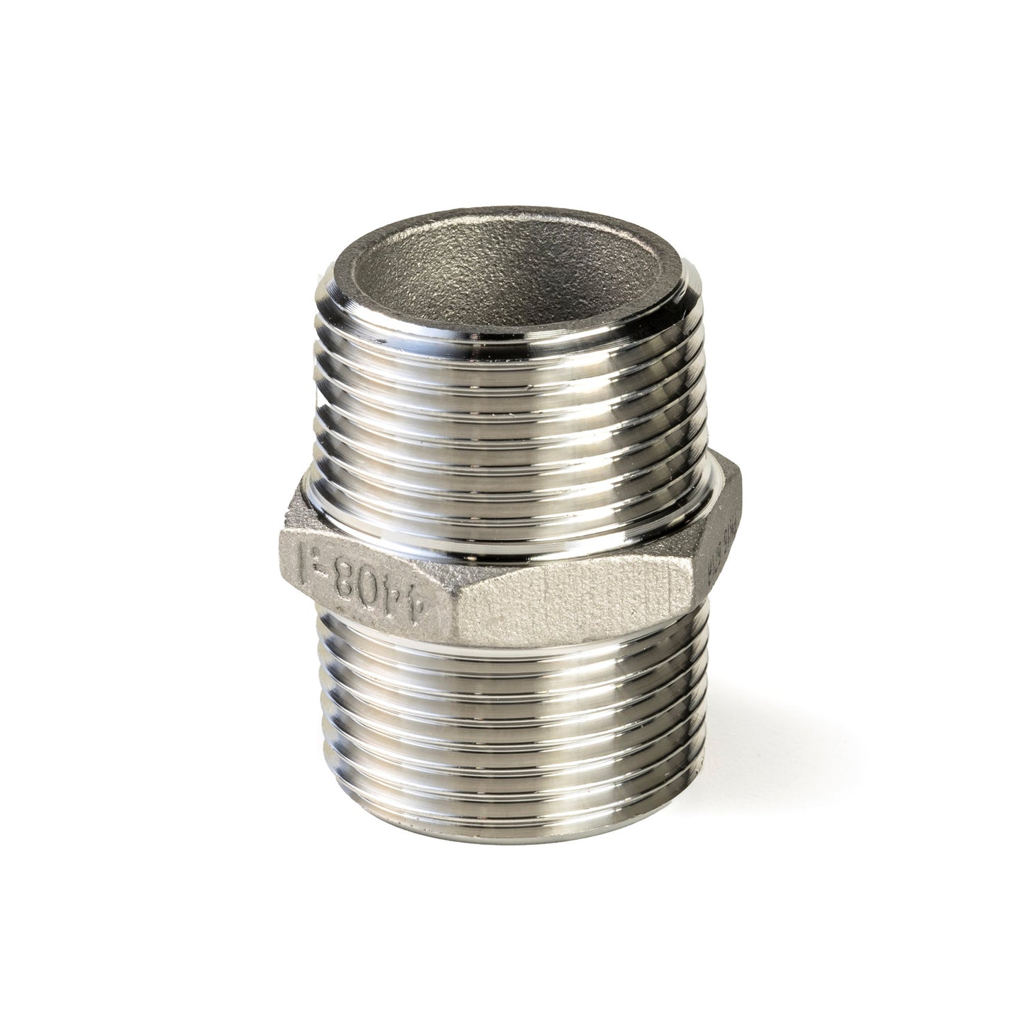 Double nipple, hexagonal, stainless steel 316L, "lost wax", 2x male thread, BSP ¼"