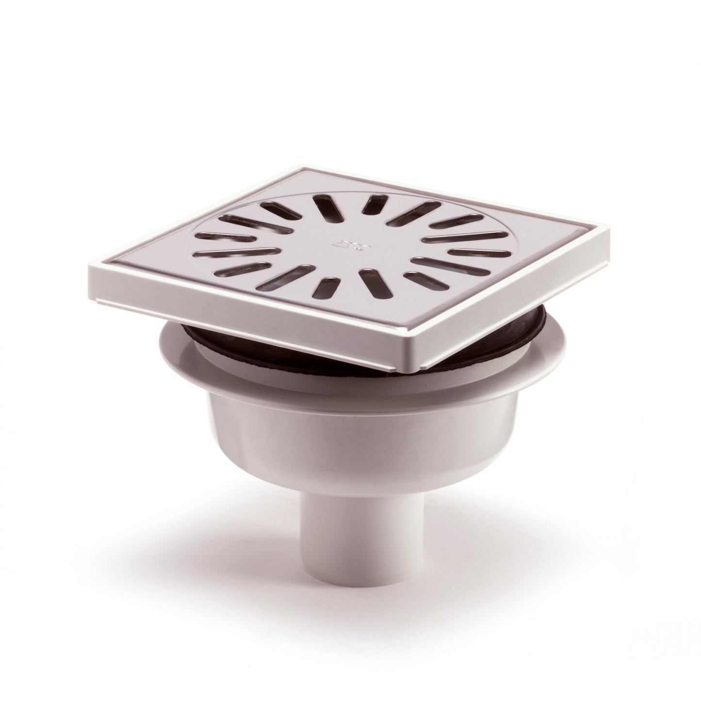 Floor drain with SS grate, ABS/SS 304, vert./hor. adj., 150x150mm, bottom outlet 50mm, 1.0l/s, 3kN